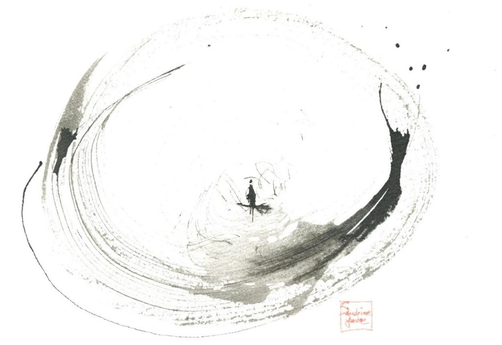 Aujourd’hui, mon travail créatif s’oriente vers un médium plus léger : l’encre, les pinceaux et l’eau. Inspirée librement par le Shodō, je m’attache à la force du geste et à la présence de ce qui est là, en moi et hors de moi. Chaque trait reflète mon état intérieur, une vibration et une tension entre intention et abandon. L’encre ainsi déposée devient le mouvement d’un instant pleinement vécu.